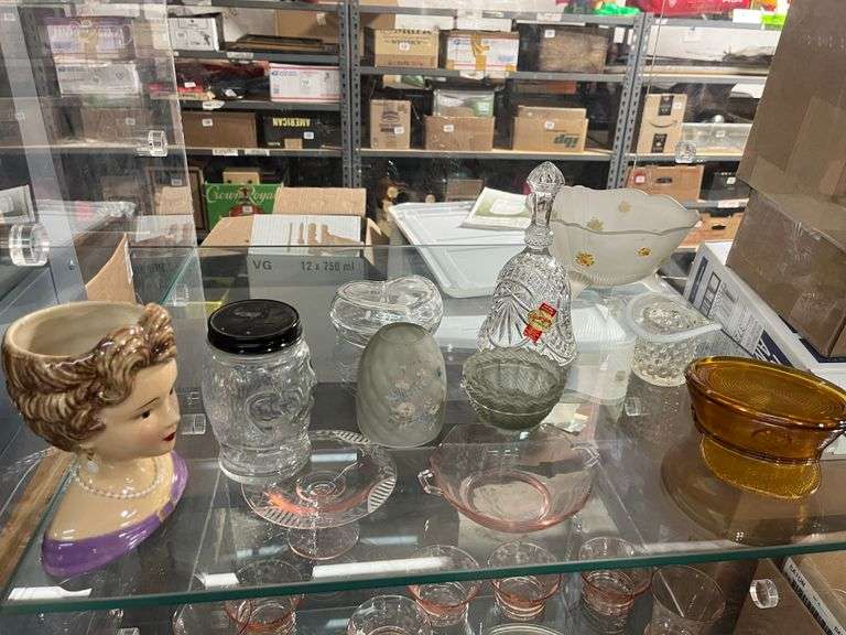 LOT 40752 - Fenton Fairy Lamp and other items (top shelf)