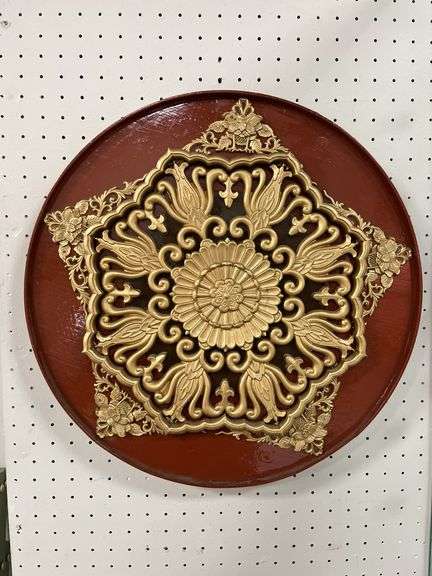 LOT 41408 - Round Wall Plaque. Wood Base with Plastic Ornament