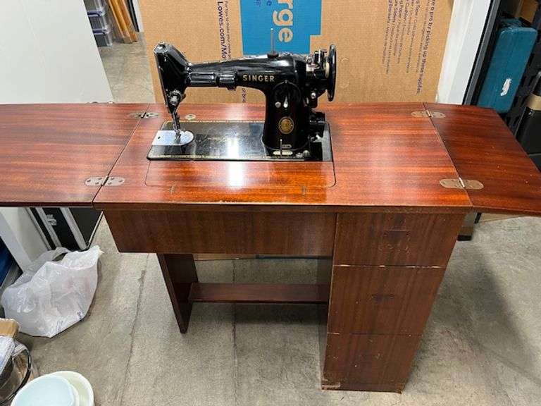 LOT 44553 - Singer Sewing Machine in Cabinet with Stool