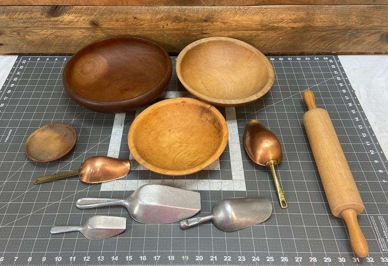 LOT 44676 - Wood Bowls and Rolling Pin, Mixed Scoops