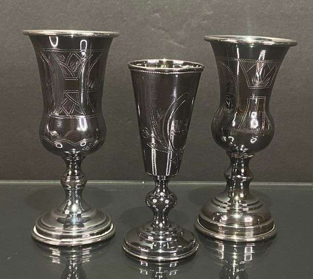 LOT 4943 - 3 Engraved Cordial Cups, 2 Marked 84, Other with Undeciphered Hallmark