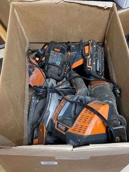 LOT 44898 - Ridgid 18v Power Tools, Chargers. All tools powered on, 2 of 3 batteries were charged.