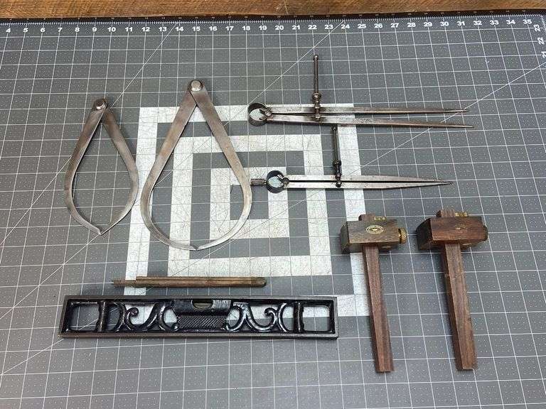 LOT 44840 - Starrett Compass, Other Compasses, Crown Tools Marking Gauges, Antique Level
