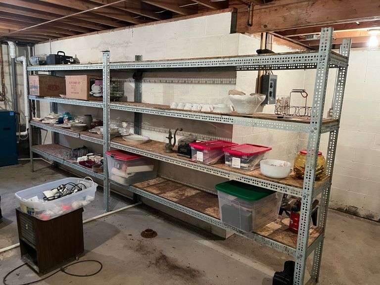 LOT 46488 - 2 Sets of Rack Style Shelves. Contents are Not Included, will require disassembly and carried up basement steps.