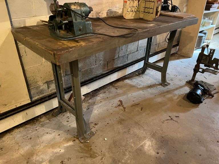 LOT 46485 - Industrial Work Table (no contents included, will require disassembly to be carried up from basement)