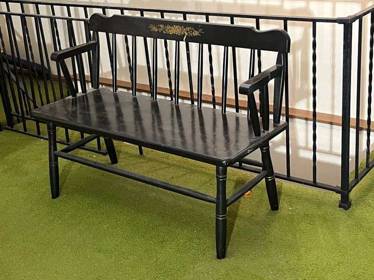 LOT 46466 - Hitchcock Style (not a signed piece) Bench in Black with Stencil Design