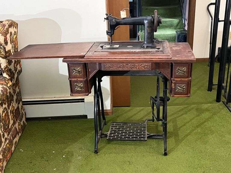 LOT 46467 - Sewing Machine in Fancy Treadle Cabinet