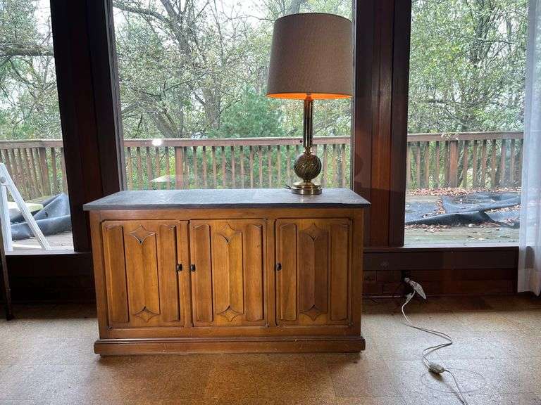 LOT 46457 - Mid Century Sideboard with Slate Top, plus Vintage Lamp