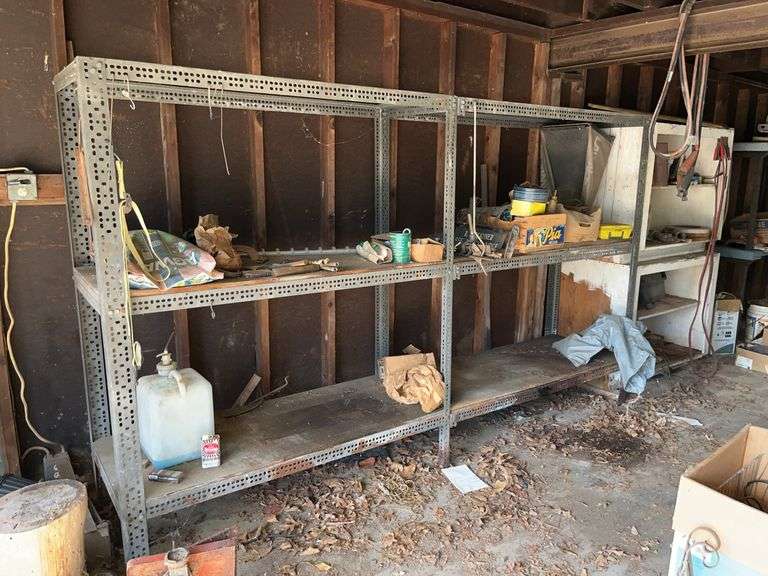 LOT 46504 - Shelving Rack (no contents included - right side bottom horizontal needs replaced, other areas with rust)