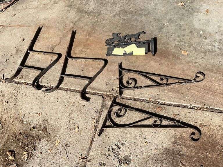LOT 46508 - Address Nameplate, Iron Bench Ends, Scroll Supports