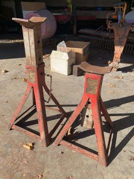 LOT 46533 - Pair Vintage Jack Stands. (says 3 ton, but I wouldn’t lay under 6,000 pounds of metal using them, light weight)