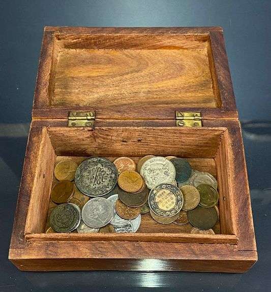 LOT 45482 - Trinket Box with Mixed Foreign Coins