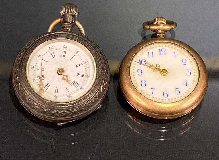 LOT 45383 - 2 Antique Pocket Watches. Louis Jacot in .800 Case and Enamel Dial (missing crystal). neither appear to be running.