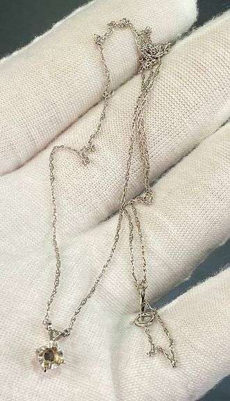 LOT 45375 - Chain marked 14k, pendant is unmarked and missing stone. Combined weight is approximately 1.7 g