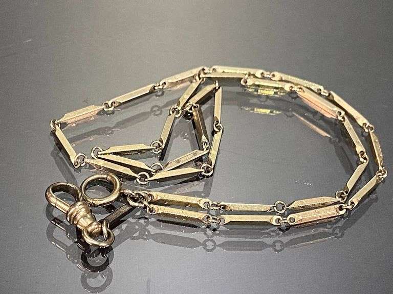 LOT 45364 - Watch Fob Chain. Both Clasps marked 14k, weighing approximately 11.4 grams
