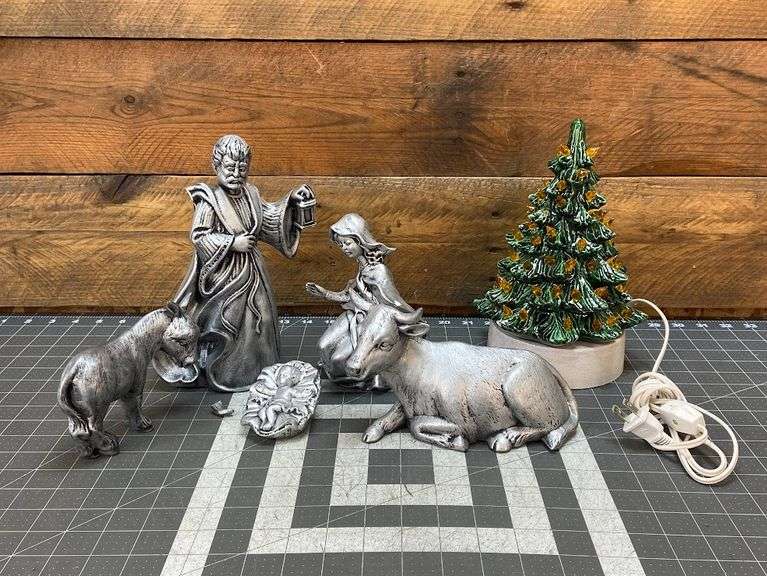 LOT 46638 - Ceramic Nativity Set and Small Christmas Tree Light