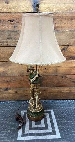 LOT 46624 - Vintage Table Lamp of a Boy Fishing, made in France