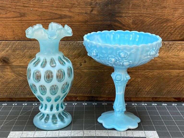 LOT 46374 - 2 PIeces of Blue Glass, 1 is Marked Fenton