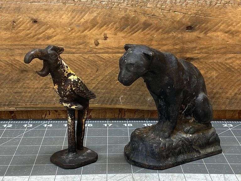 LOT 46353 - Iron Parrot and Lion Sculptures