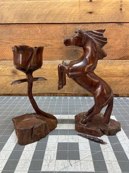LOT 46351 - Ironwood Sculptures. Unicorn and Rose