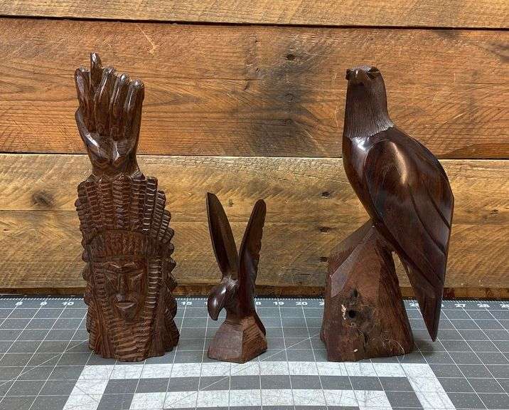 LOT 46350 - Ironwood Sculptures. Eagles and Totem