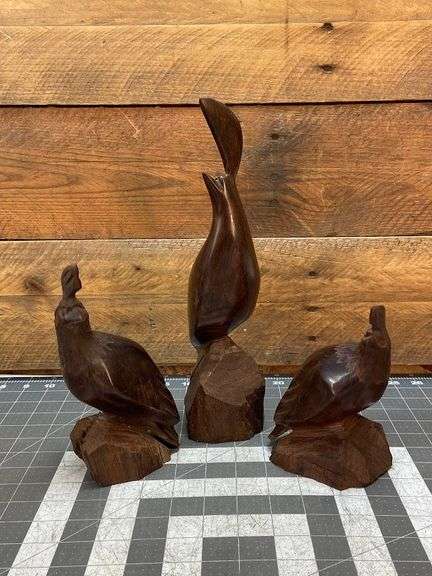 LOT 46348 - 3 Carved Ironwood Quail Sculptures
