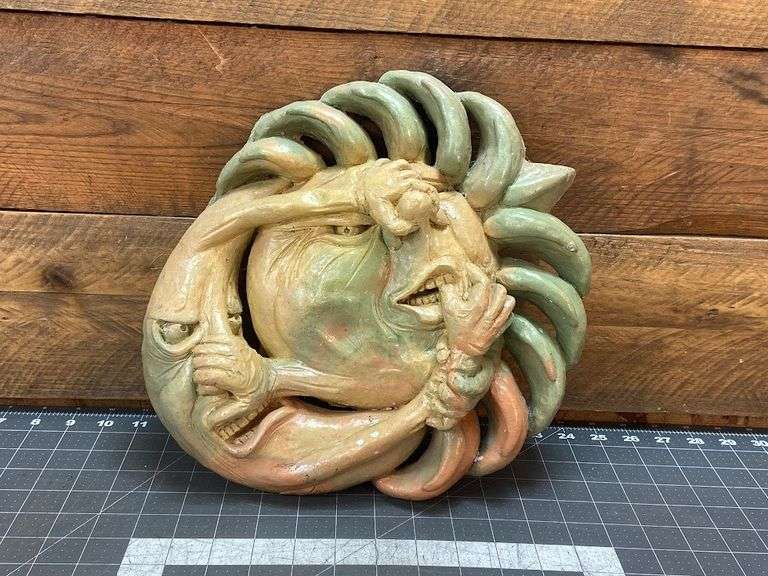 LOT 46344 - Artist Signed Clay Sculpture of the Moon Fighting the Sun
