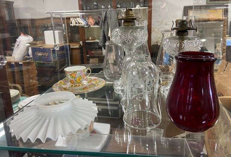 LOT 46336 - Clear Glass Lamps, Teacup, Globes
