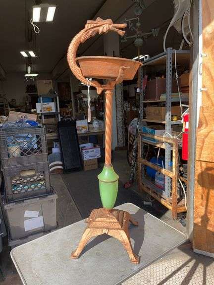 LOT 46308 - Pedestal Ashtray with Dragon Head Handle and Jadeite Spacer