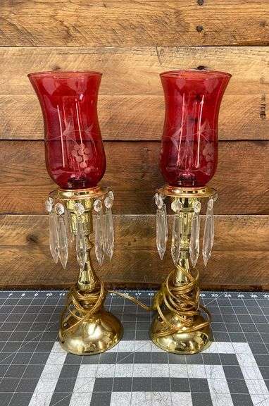 LOT 46304 - Pair of Lustres Lamps with Ruby Flash Shades