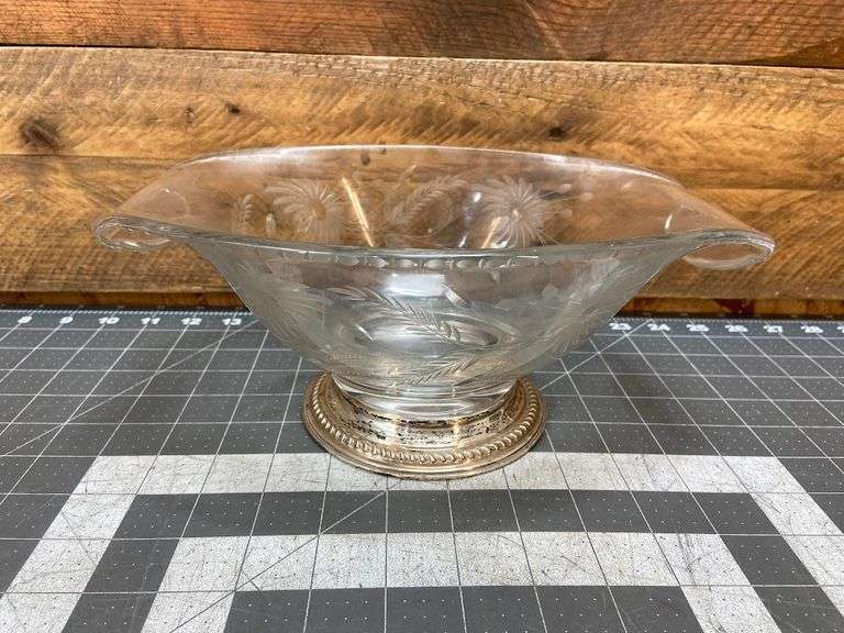 LOT 46255 - Etched Glass Bowl with Sterling Silver Rim