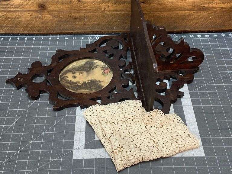 LOT 46226 - Victorian Scrollwork Wall Shelf with Print