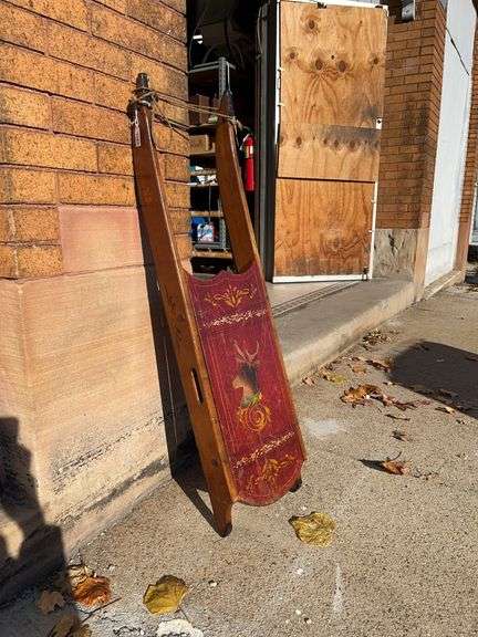 LOT 46216 - 40" Antique Child's Sled with Hand Painted Reindeer
