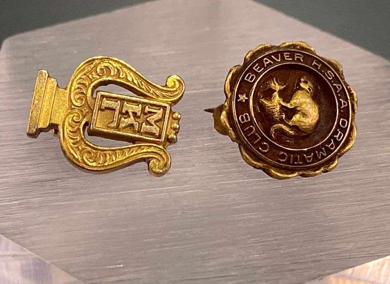 LOT 45314 - 2 Small Pins, 1920s Beaver HS, both marked 10k, weighing 3.2g